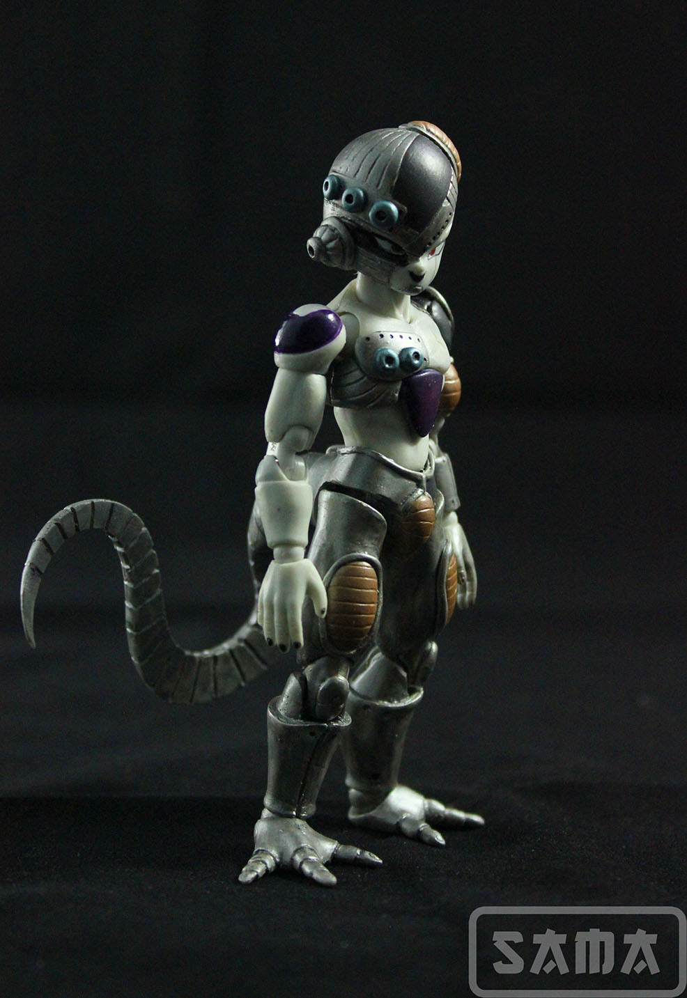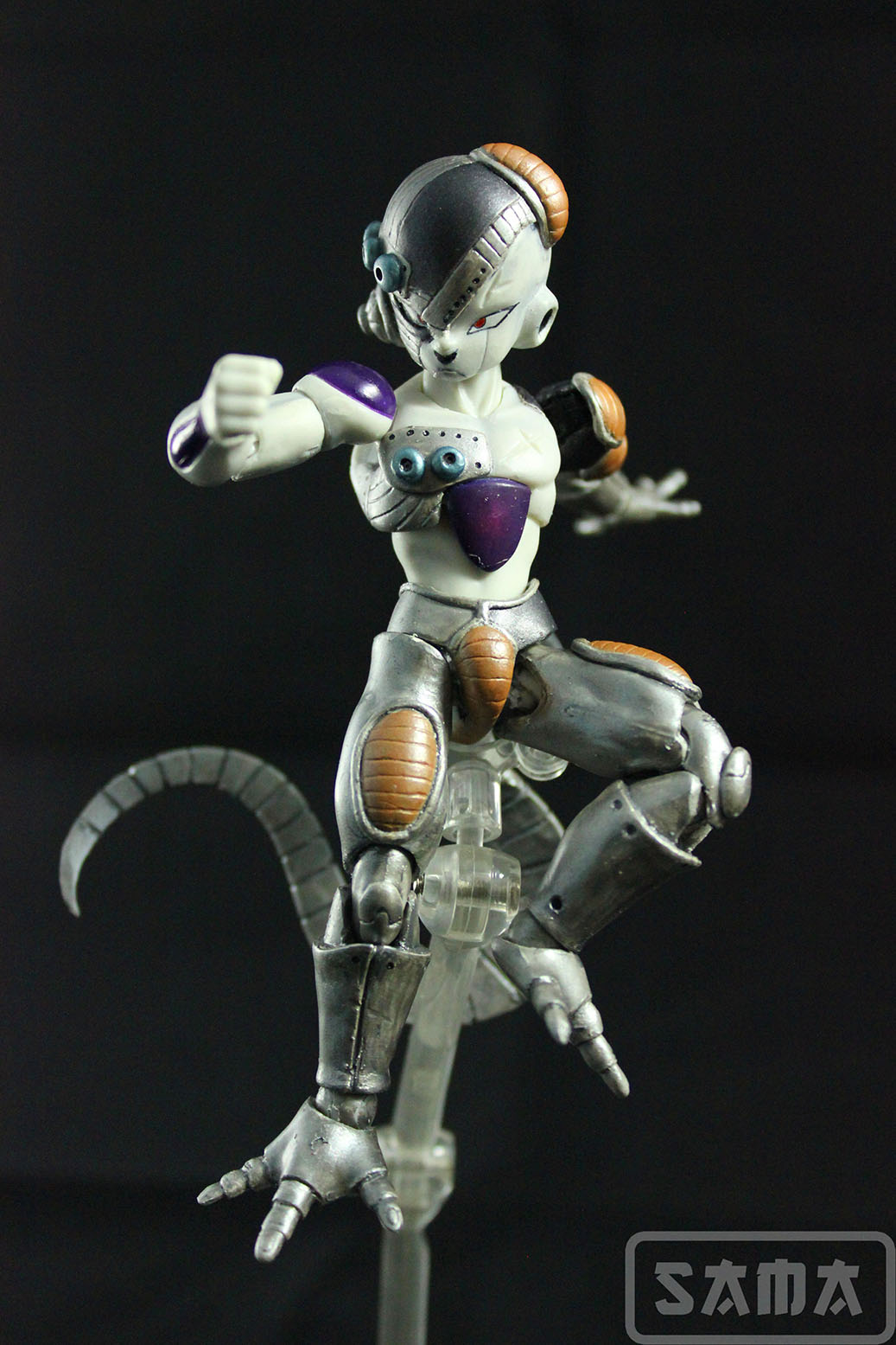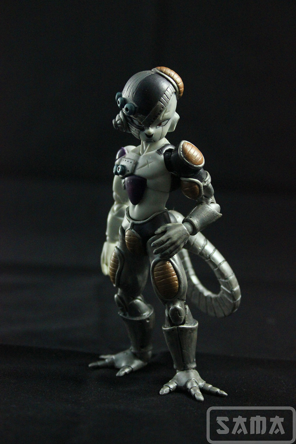 Primer trabajo custom que realizamos en SAMA Dioramas. Y qué mejor manera de hacerlo que con un custom de Mecha Freezer escala 1/12. Partiendo de la base de un Freezer Datong, copia de la figura de colección SH Figuarts, hemos recreado esta versión robótica del famoso pirata intergaláctico de Dragon Ball. Completamente modelado y pintado a mano esta figura hará las delicias del coleccionista hasta que SH Figuarts se digne en sacar una versión oficial.