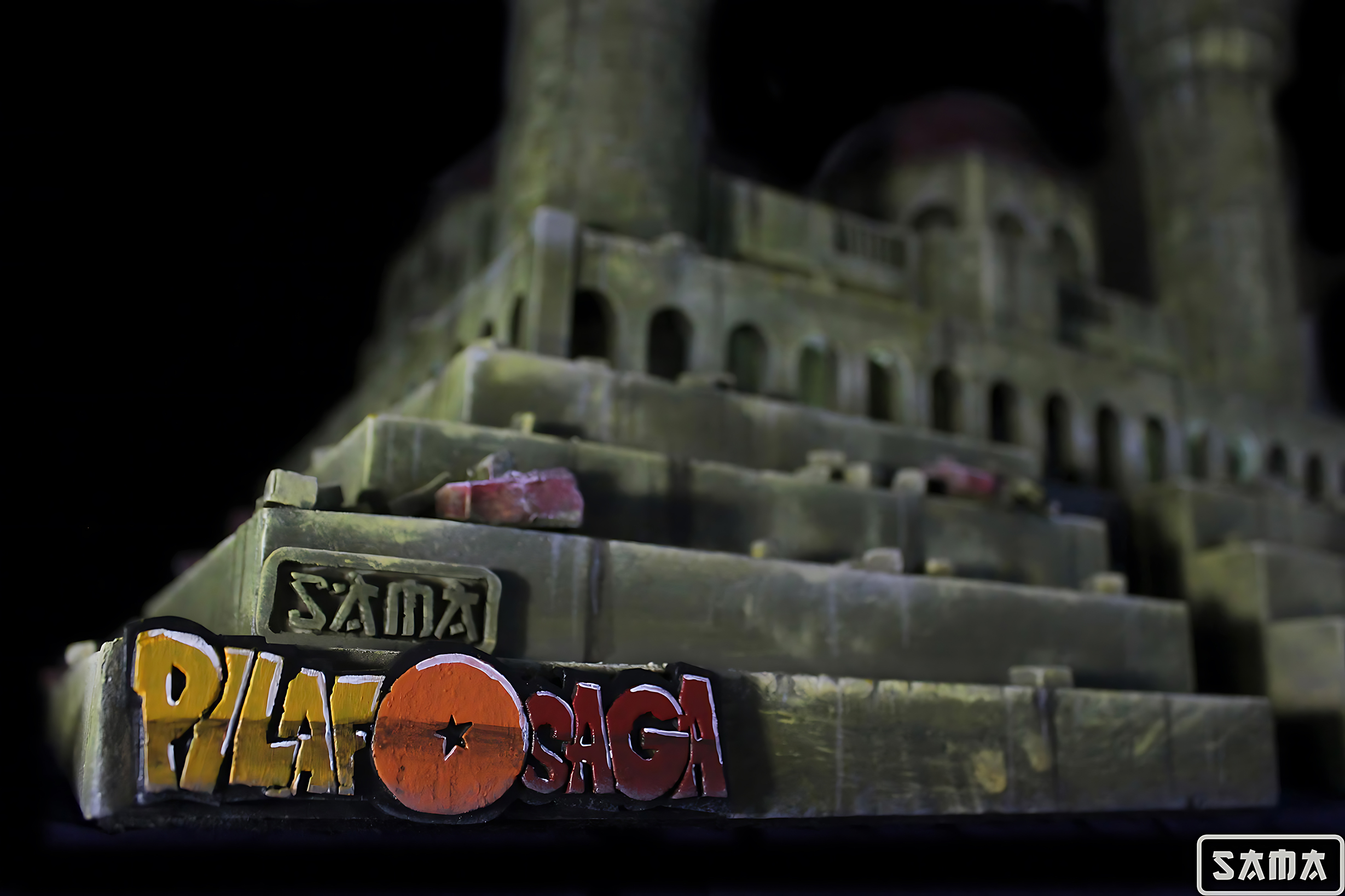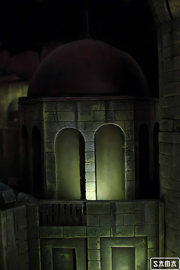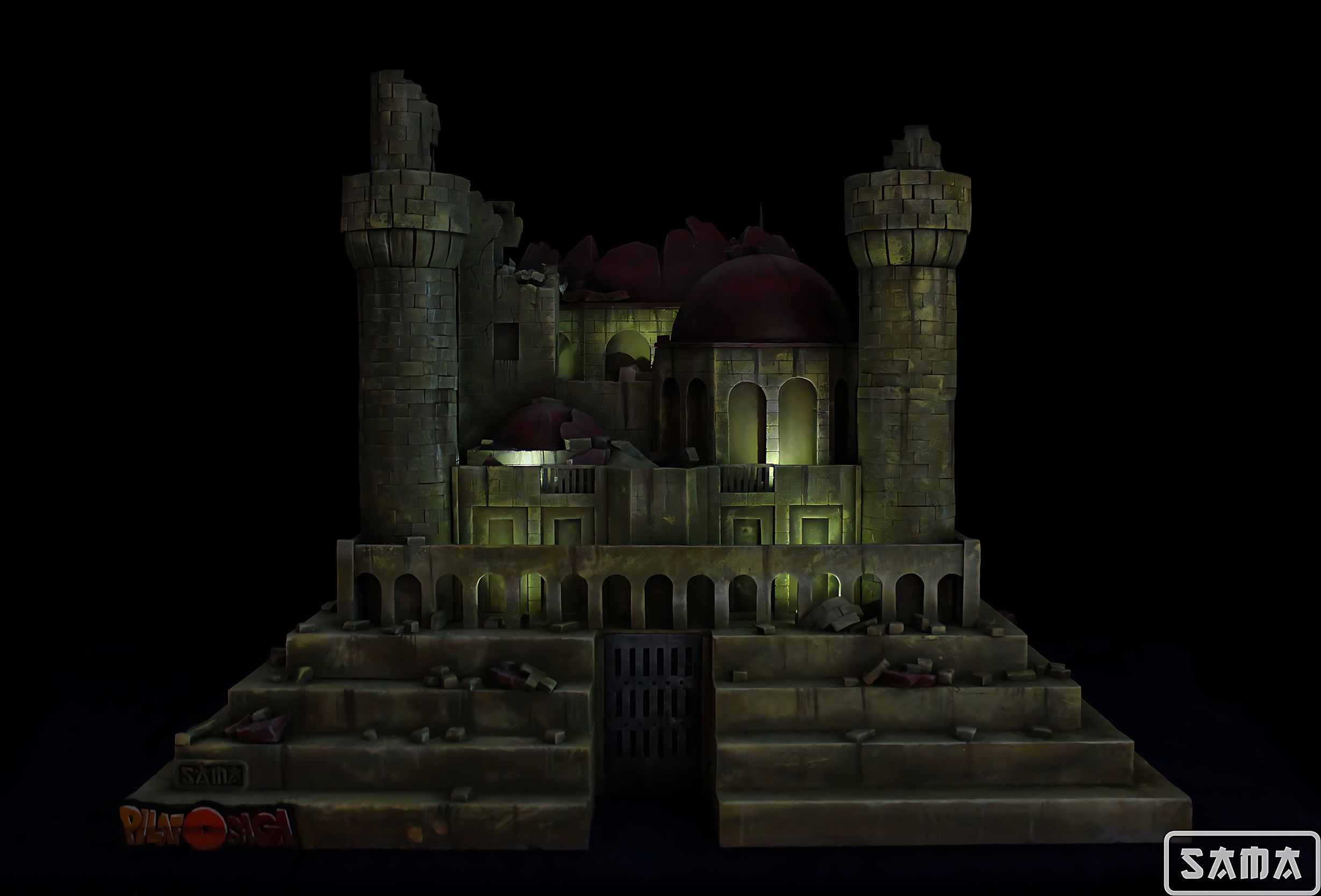 Segunda versión del Castillo de Pilaf, esta vez mejorado con una iluminación puntual que ensalza las formas. del castillo. Los castillos siempre son un gran reto, ya que casi todas sus pareces están creadas ladrillo a ladrillo, como puedes comprobar en el tutorial que se hizo de la torre y por su gran tamaño. Nada más y nada menos que 84x60x50 cm de castillo para albergar la figura de Gohan Ozaru Great Ape de Ichiban. Diorama inspirado en la escena de Dragon ball donde Goku se transforma en Ozaru por primera vez, destruyendo así el castillo donde Pilaf le tiene prisionero.