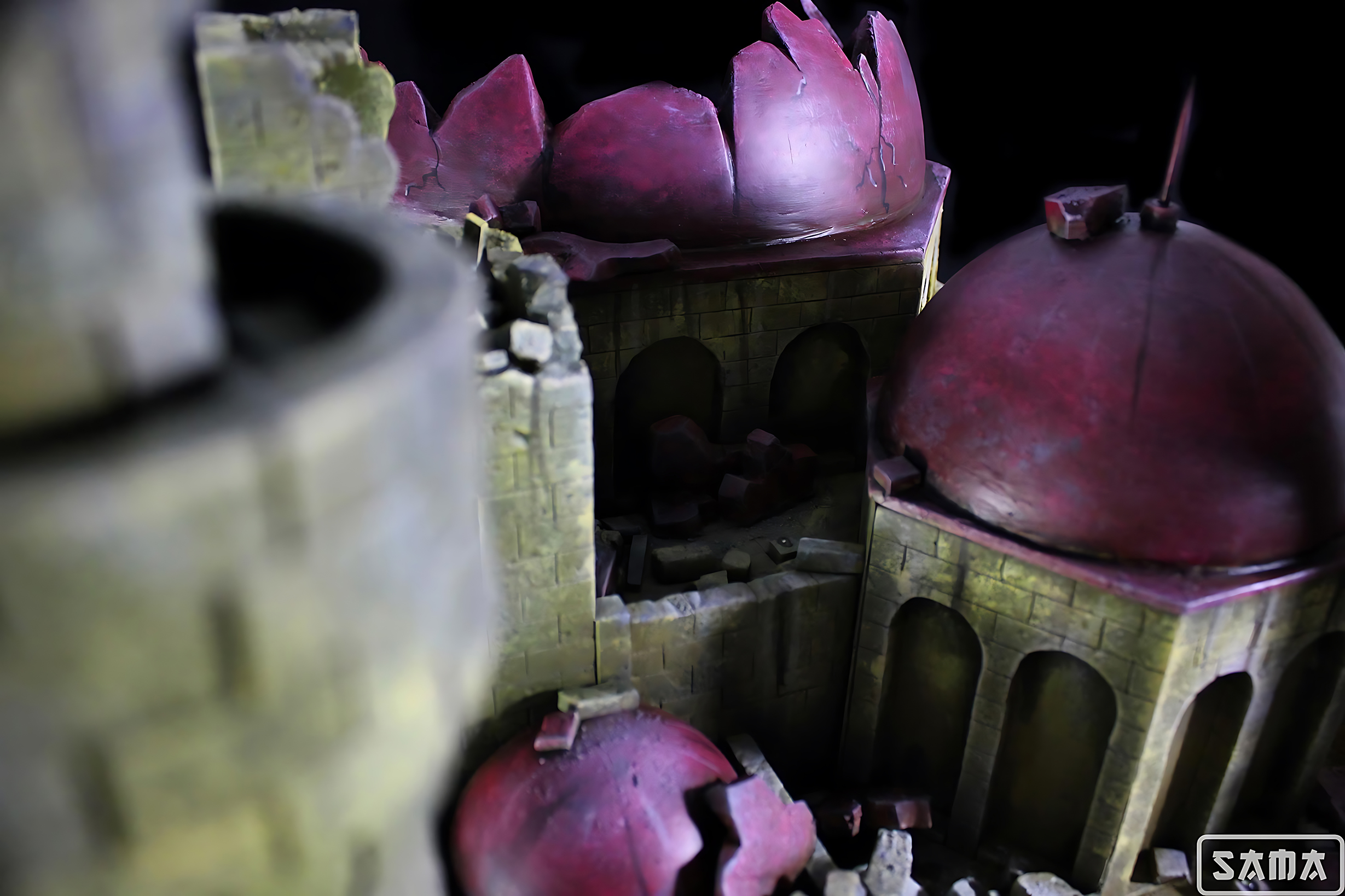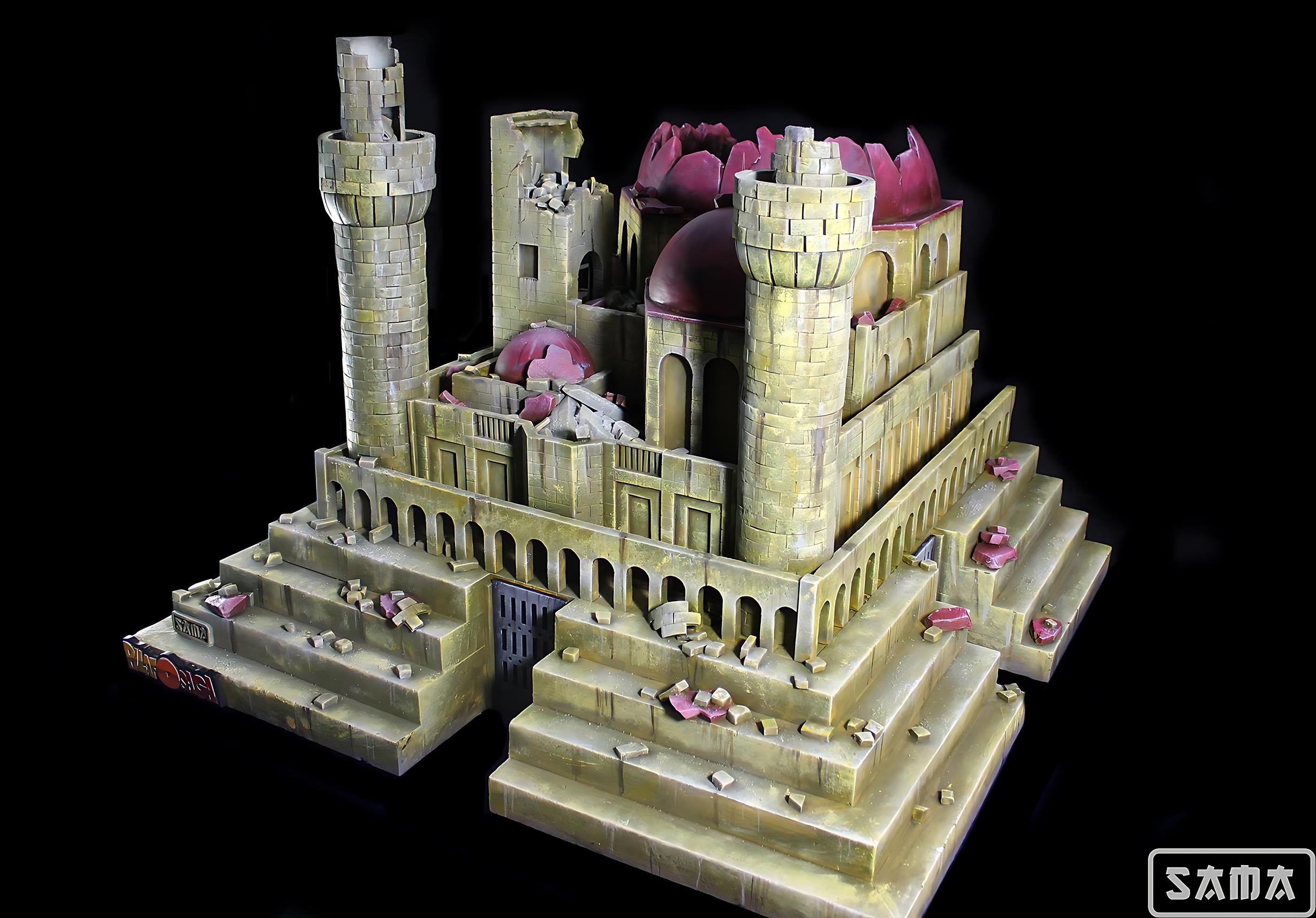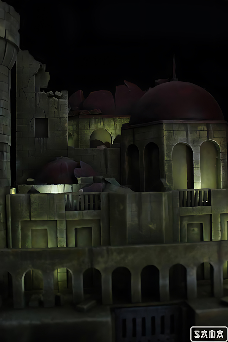 Segunda versión del Castillo de Pilaf, esta vez mejorado con una iluminación puntual que ensalza las formas. del castillo. Los castillos siempre son un gran reto, ya que casi todas sus pareces están creadas ladrillo a ladrillo, como puedes comprobar en el tutorial que se hizo de la torre y por su gran tamaño. Nada más y nada menos que 84x60x50 cm de castillo para albergar la figura de Gohan Ozaru Great Ape de Ichiban. Diorama inspirado en la escena de Dragon ball donde Goku se transforma en Ozaru por primera vez, destruyendo así el castillo donde Pilaf le tiene prisionero.