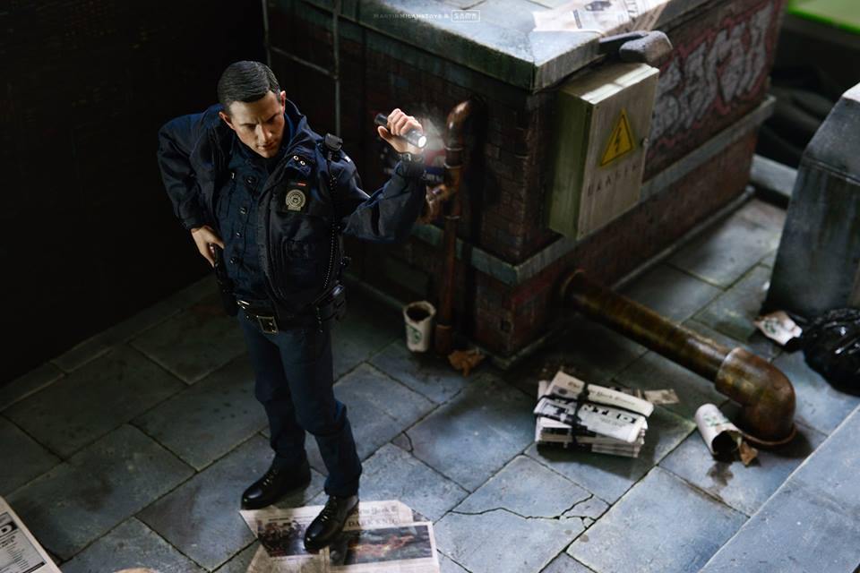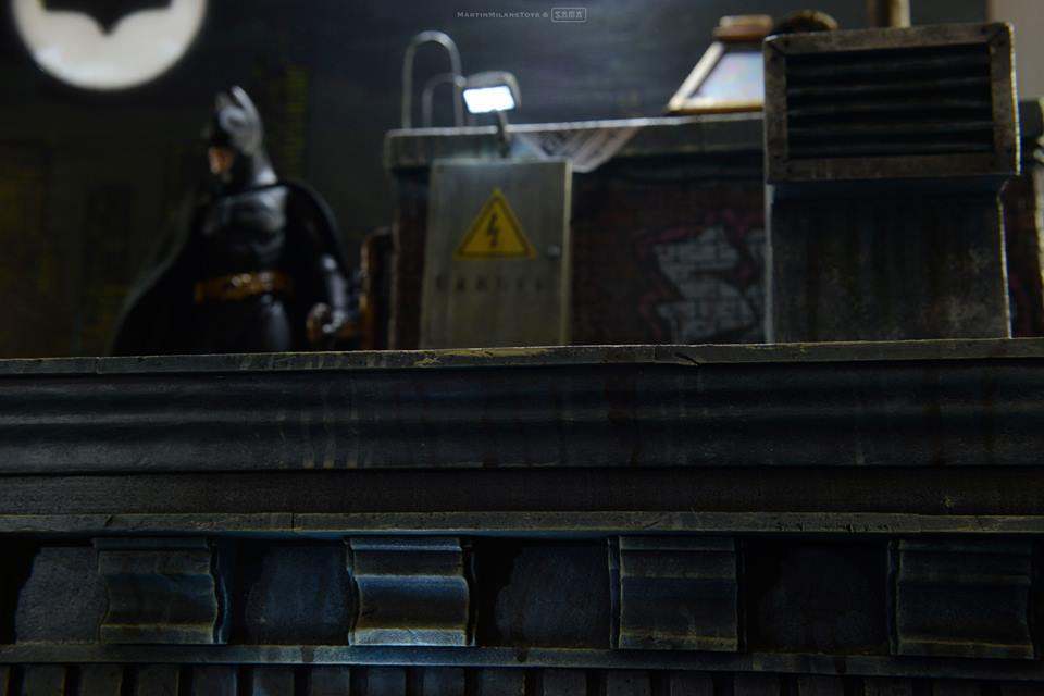 Primer diorama escala 1/6 para Hot Toys de las películas de Batman. En esta escena hemos recreado la azotea donde Gordon instala la Batseñal para comunicarse con el alter ego de Bruce Wayne. Dado que estas figuras de colección lucen un acabado realista hemos creado un diorama acorde. Un acabado desaturado y sucio para asemejarse a la estética oscura y fría de la ciudad de Gotham. Un punto diferenciador del diorama es la trasera simulando un skyline de la ciudad, pintado a mano y con la Batseñal de fondo. Y como los tejados dan mucho juego de detalles, no podiamos perder la oportunidad de llenar el diorama con: colillas, vasos de café, tragaluces, chimeneas, escaleras, luces, bolsas de basura, tuberias, periódicos, etc…