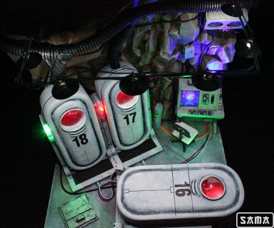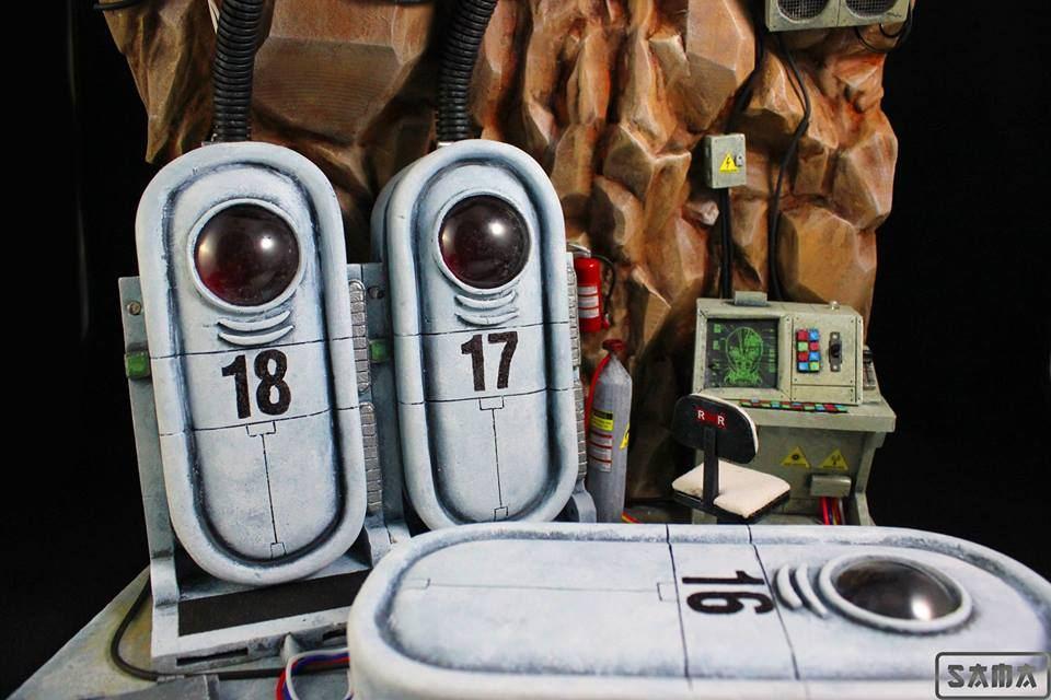 ¿Eres de los que creen que una vitrina Detolf se queda pequeña para las SH Figuarts? Pues aquí está SAMA dioramas para llevarte la contraria con este pedazo de diorama para Dragon Ball. Siempre hemos tenido pendiente el reto de crear un laboratorio para nuestro loco Dr. Gero. Por lo que no podíamos desaprovechar la oportunidad de coronarnos con este diorama. Este escenario tiene de todo: luces, cápsulas abatibles y retroiluminadas, un ordenador, bombonas, extintores, cables, ventiladores, etc… Todo un lujo para poder lucir estos personajes de Bola de Dragón que marcaron una época.